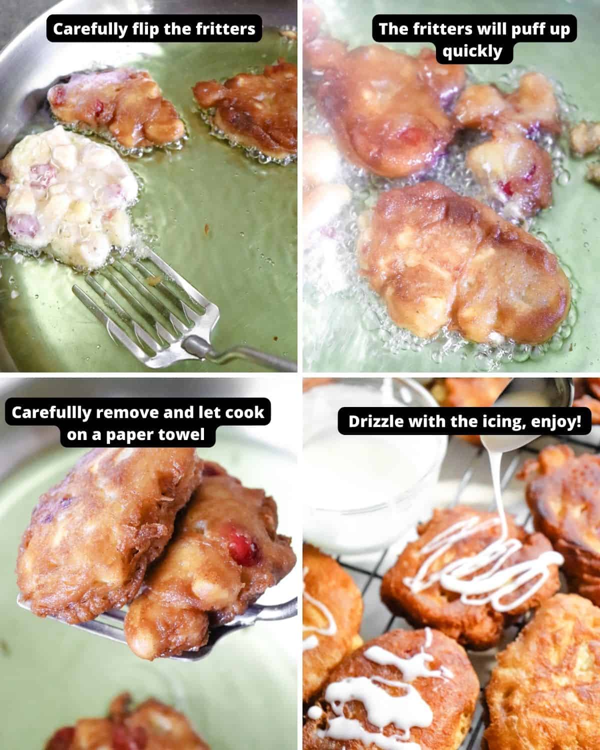 - Once cooled, use a fork to drizzle fritters with icing. Serve!