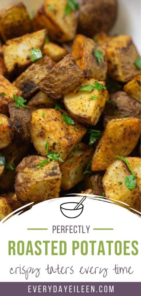 A high temperature in the oven gives a crispy outside and a soft interior. I recommend 425°F oven temperature for extra crispy roasted potatoes.